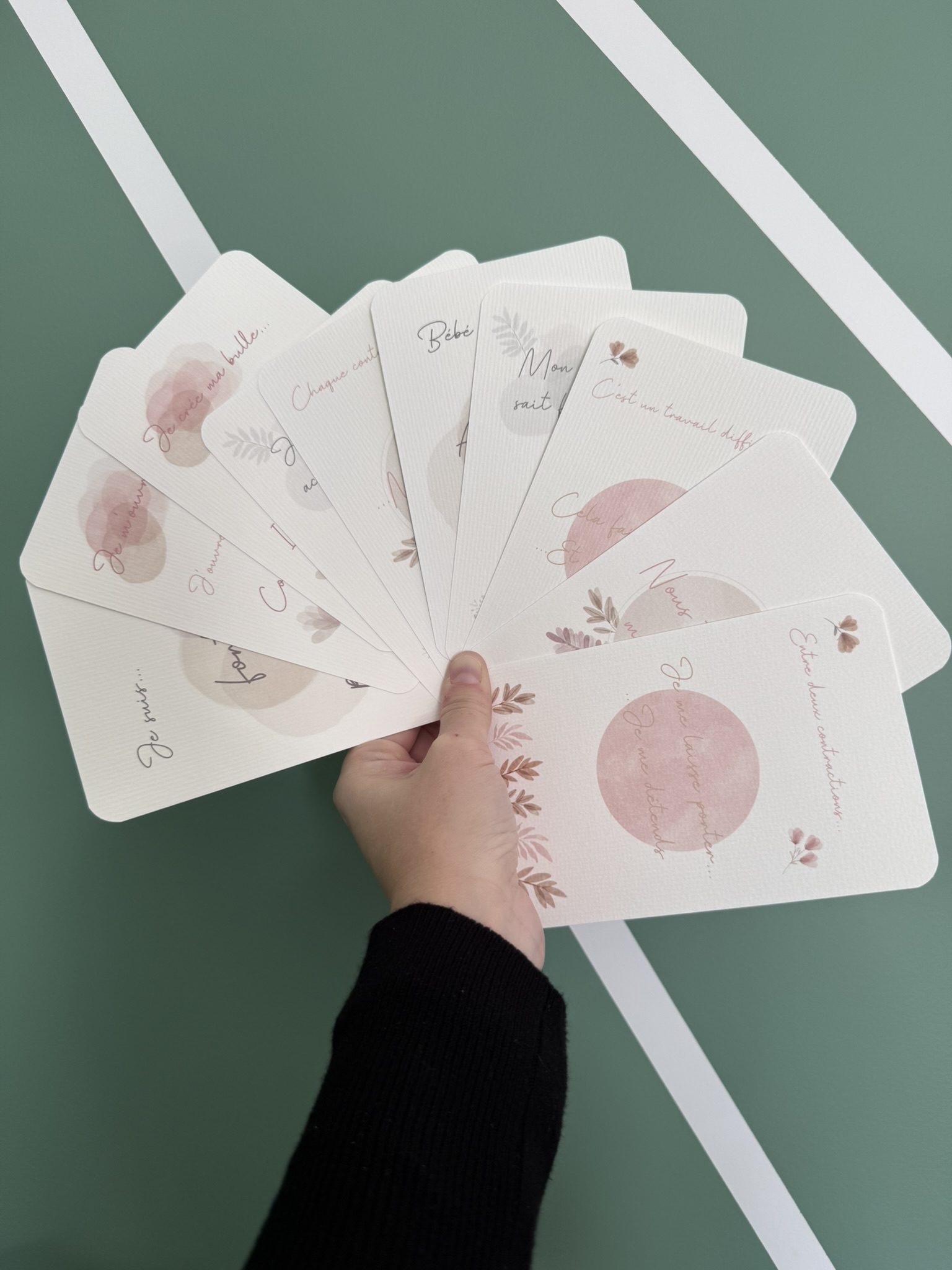 Ces belles cartes vous permettrons de souffler, de penser à vous et à votre bébé, de respirer et de vous sentir forte.